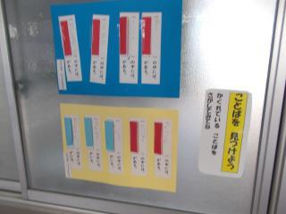 国語の学習でしょうか、言葉の中にかくれている言葉を探すクイズが掲示されていました。