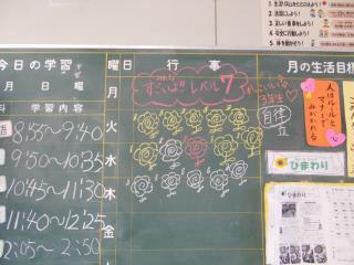 黒板にたくさんの花丸がついていました。