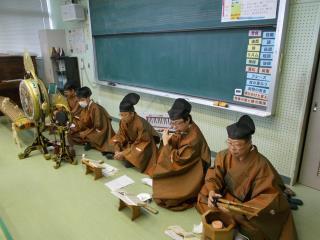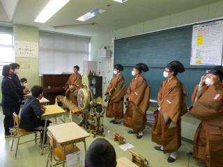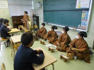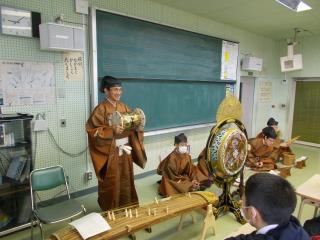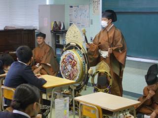 1時間目、6年生が音楽の特別授業で雅楽について学びました。