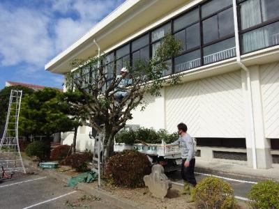 体育館前の木の枝が低いところまで伸びていたので、子ども達に当たらないように剪定してくださいました。