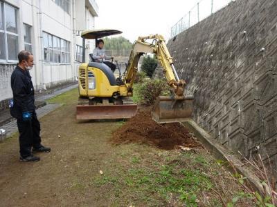 校舎北側に有った切り株を抜いていただきました。持久走コースとして安心して走ることができるようになりました。