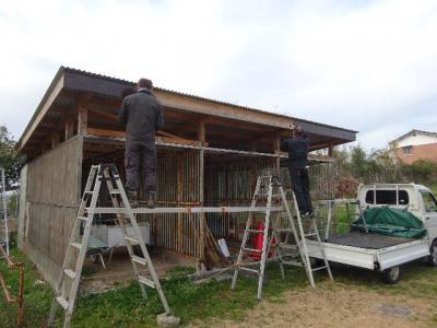 農具等置き場の木部に、防腐のための塗装をしてくださいました。