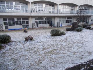 朝は雪で白い風景でしたが、2時間目の休み時間には雪が溶け