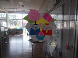 あおぞら2組に、猫の雛飾りが掲示してありました。