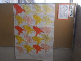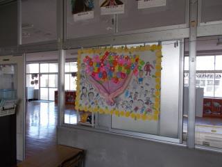 6年生の卒業を祝う壁飾りができあがっていました。