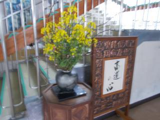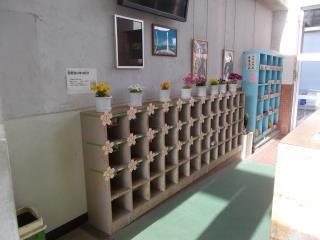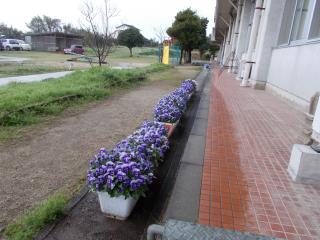高道小学校の校内には、たくさんの美しい花が飾られていて