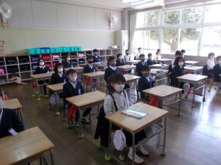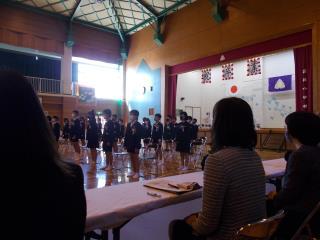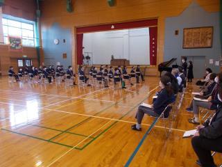 教室で聞いている子どもたちも素晴らしい態度で式に臨んでいました。