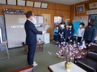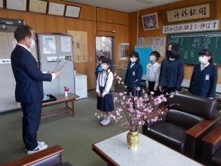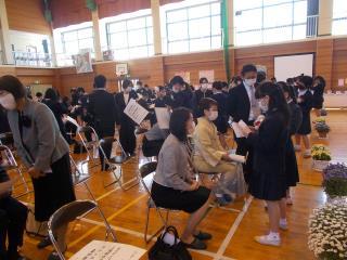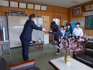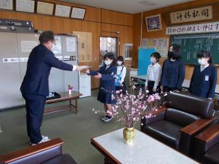 密を避けるため、学年代表が校長室で修了証を受け取りました。
