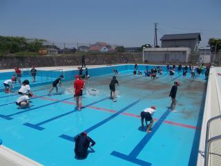 5・6年生のプール掃除です。