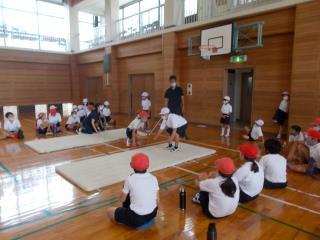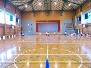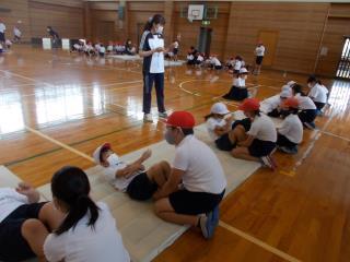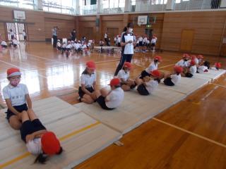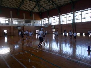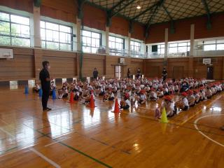 最初に体育館や運動場で全体的な指導を行いました。