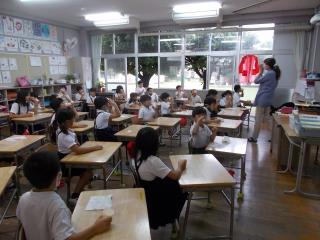 5時間目に1年生がペープサートで楽しみました。