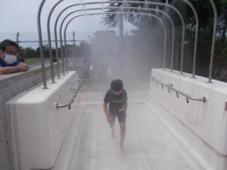 初めてのシャワーはちょっと冷たそうでしたが、歓声が上がっていました。