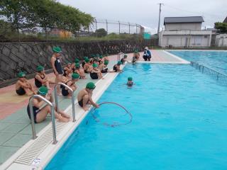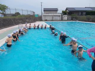 2時間目に1年生がプール開きを行いました。