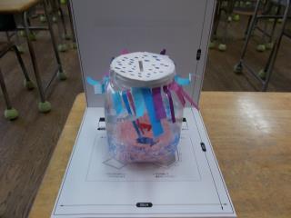 アイデア貯金箱の代表児童作品が高道郵便局に展示されます。