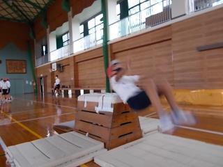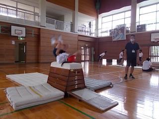 取り組んでいる技は、台上前転とハンドスプリングです。