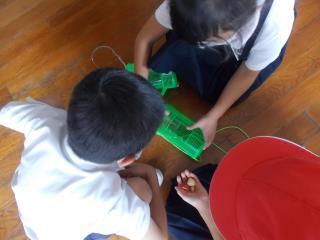 1年生と2年生が、生活科で生き物とふれあう学習を進めています。