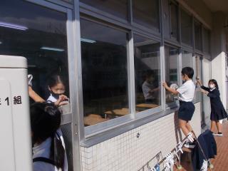 窓ふきを頑張っていました。