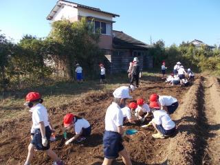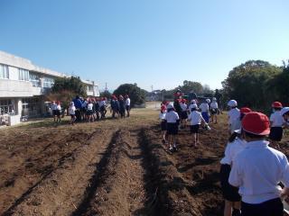 本日は時間をずらして、全学年で芋掘りを行いました。