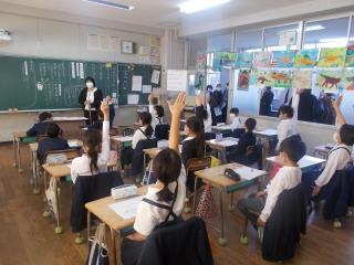 2時間目に5年生で国語科の授業研究会を行いました。
