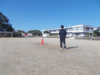 6年生の代表児童が、三角コーンを火元に見立て