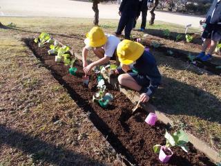 あおぞら学級の子どもたちが野菜の苗を植えました。