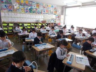 1年生が鍵盤ハーモニカの練習を頑張っていました。