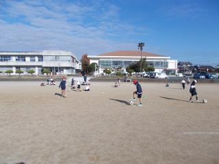 2年生が体育で「ボールけりゲーム」に取り組んでいました。