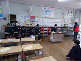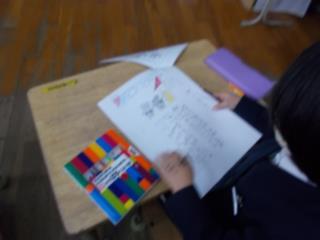 この後、各学級の発表に対して返しのお手紙を書きました。