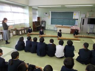 箏は和楽器を体験するために音楽専科の先生が準備してくださいました。