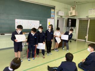 2年生では、帰りの会の際に、冬休みに誕生日を迎える子どもの