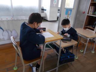教室で静かに折り紙などをして過ごしている子どもたちがいました。
