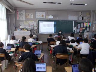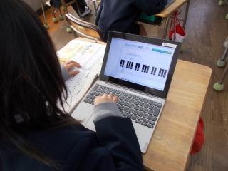 2年生が音楽の時間にオンラインのピアノソフトを使って学習していました。