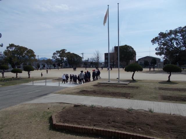 昼休みにたくさんの子どもたちが、校庭で遊んでいました。