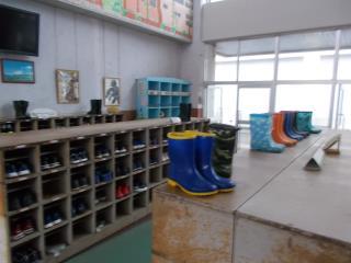 児童玄関には長靴がきちんと並べて置かれていました。