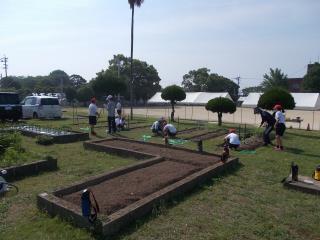 ミニトマトやピーマンなどの野菜の苗が植えてありました。