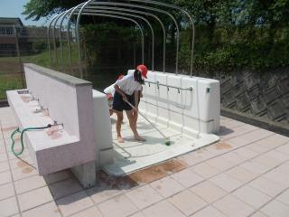 3・4年生が更衣室やプールサイド、倉庫などの掃除を行いました。
