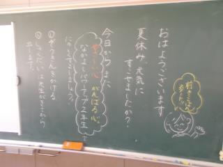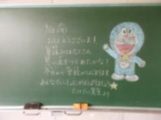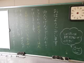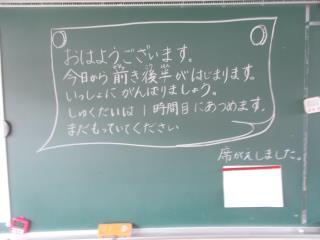 各学級の黒板には、先生から子どもたちへのメッセージが書かれていました。