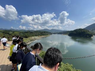 緑川ダムでは資料館やダムの内部、ダム湖などを見学しました。