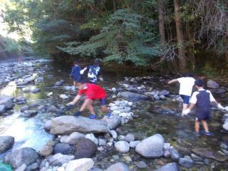 2日目の活動は川遊びとニジマスつかみです。