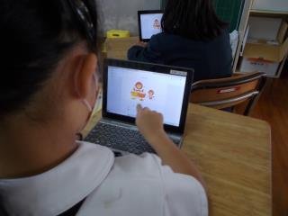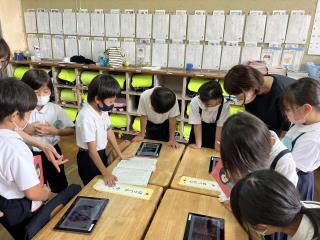 5時間目に1年生がタブレットを使って楽しく学習をしていました。