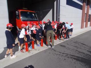水消化器での放水訓練です。