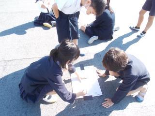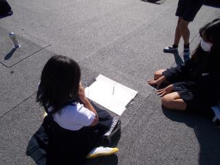 屋上で、休み時間毎に影の長さと向きを記録します。