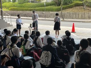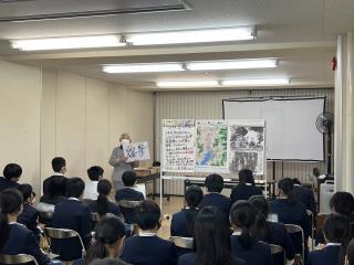 原爆に関する講話です。みんな真剣に話を聞いています。