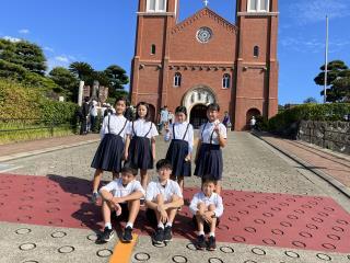 浦上天主堂の前ではいチーズ!
