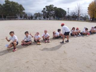 運動場で6年生が卒業アルバム用の写真撮影を行っていました。