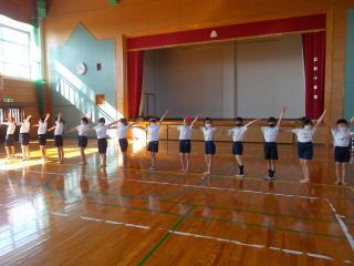 3年生が体育で集団演技に取り組んでいます。