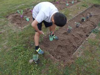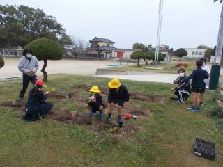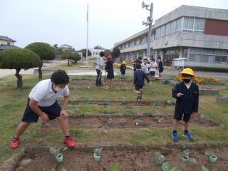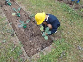 あおぞら学級の子どもたちが、野菜の苗を植えていました。
