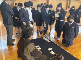 先生がお手本を見せてくださっています。