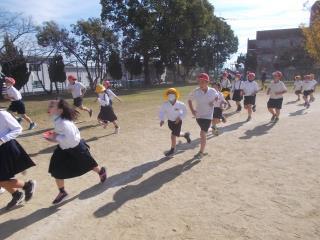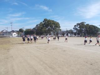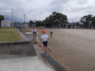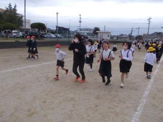 昼休みの5分間、みんなで運動場を走ります。