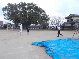 運動場で6年生が卒業アルバム用の写真撮影を行っていました。